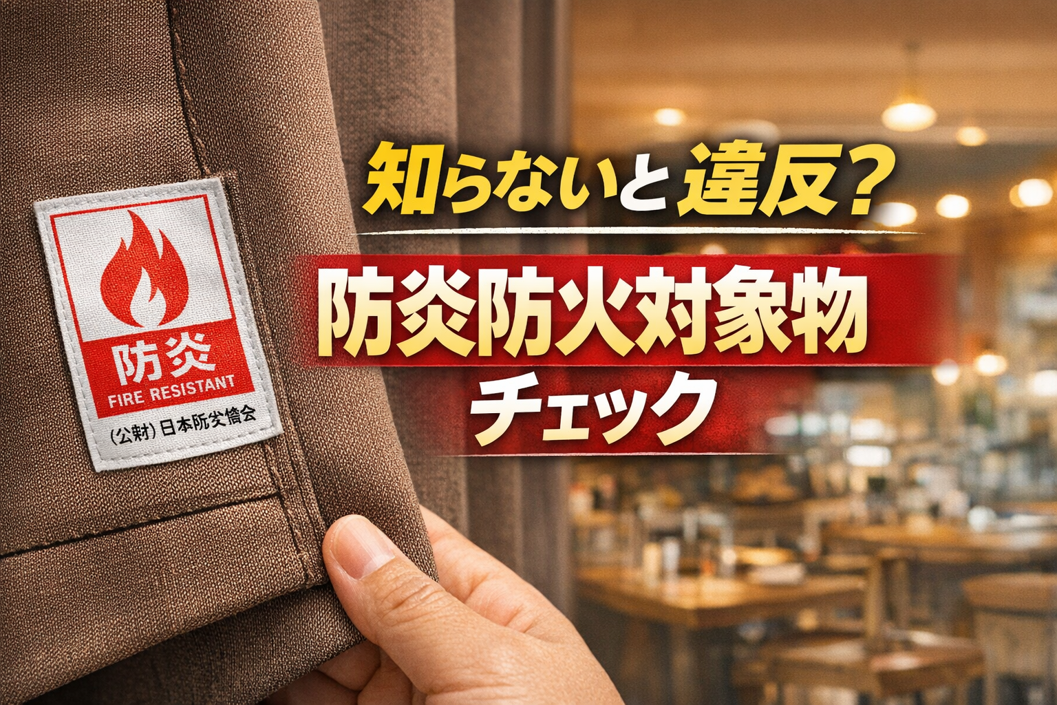 重要なのは、防炎規制は一部の大規模施設だけの話ではないということです。飲食店、物販店舗、福祉施設、保育施設、宿泊施設など、多くの事業所が対象になる可能性があります。規模が小さくても、用途によっては義務が発生します。「うちは関係ない」と思い込まず、まず確認することが大切です。